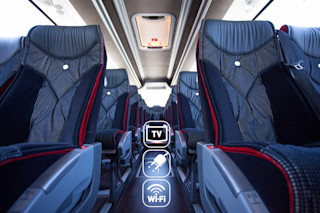 Alguns autocarros possuem ainda televisões embutidas nas cadeiras onde passam filmes, noticiários ou séries de televisão. Se precisar de guardar as suas malas ou pertences, pode fazê-lo nas enormes bagageiras de carga nas laterais do veículo. E se lá fora fizer muito calor, não se preocupe, todos os autocarros têm ar condicionado individual.